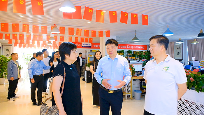 7月20日下午,九三學(xué)社河南省委常委、省生態(tài)環(huán)境廳委員會(huì)主委郜國玉,九三學(xué)社河南省科技廳委員會(huì)主委劉三軍,九三學(xué)社省生態(tài)環(huán)境廳委員會(huì)副主委、東區(qū)支社主委劉萍,九三學(xué)社河南省科技廳委員會(huì)副主委、五支社主委孟彩虹等一行蒞臨河南榮盛科技集團(tuán)調(diào)研指導(dǎo)工作。河南榮盛科技集團(tuán)董事長楚科奇陪同調(diào)研。